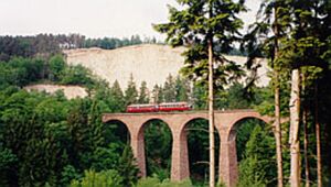 Das Viadukt zwischen Hoxel und Deuselbach gehört zu den höchsten eingeschossigen steinernen Eisenbahnbrücken in Deutschland. Die 160 Meter lange und 40 Meter hohe Talbrücke besteht aus insgesamt 8 Bögen und überspannt das gesamte Hachenbachtal.