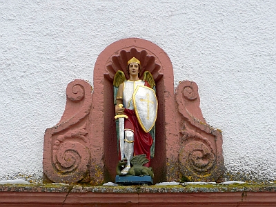 Dreiachsiger Saalbau, 1734; barockes Heiligenhäuschen. [1]