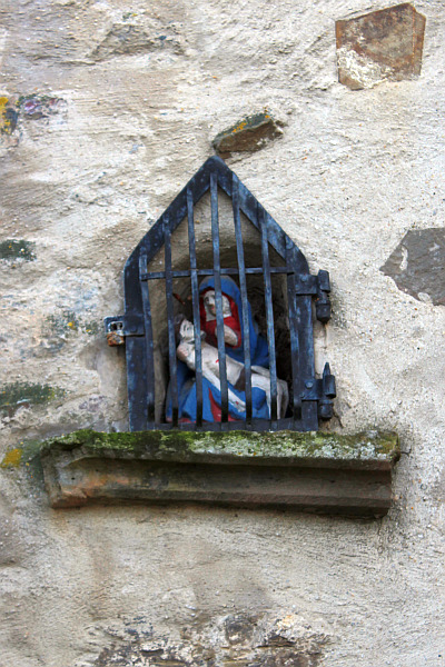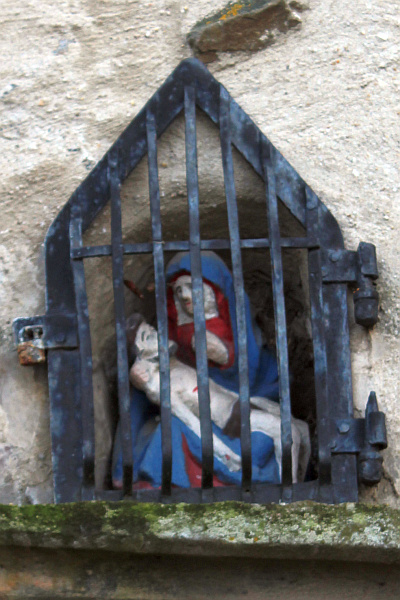 Am Ende der Udler Straße stoßen wir im alten Dorfkern auf das authentische Haus Zur Sternwarte 1, an dem ein Bildstock aus dem Anfang des 18. Jahrhunderts steht, ein Wegekreuz aus rotem Sandstein mit der Pietà als Bildrelief. An dem Schaftkreuz mit Altarkonsole fehlt leider das Abschlusskreuz. Die seitliche Beschriftung am Bildstock ist nicht mehr lesbar. Am Haus selbst ist eine eingelassene Bildnische mit Pietà zu sehen. [1]