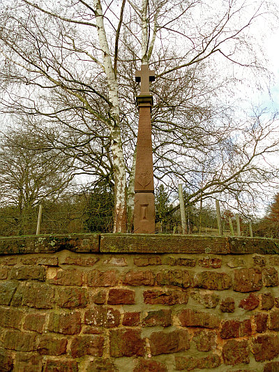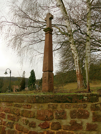 Fast drei Meter hohes Schaftkreuz in der äußersten Ecke des Schlossparks.
