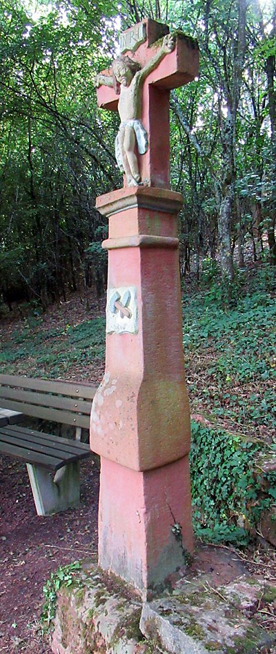 Schaftkreuz aus der Mitte des 17. Jahrhunderts. [...] Eine Inschrift fehlt völlig, lediglich ein Wappenschild schmückt den Kreuzschaft. Darin sind Hammer und Meißel als Berufszeichen des Steinmetzes zu erkennen. [1]