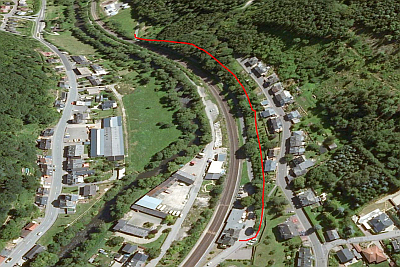 Der 550 Meter lange Weg führte vom Kordeler Bahnhof - unterhalb der Butzweiler Straße - bis zum ehemaligen Bahnübergang vor der heutigen Kläranlage. Der verlauf hat sich noch bis heute in den Grundstücksgrenzen erhalten. [2]