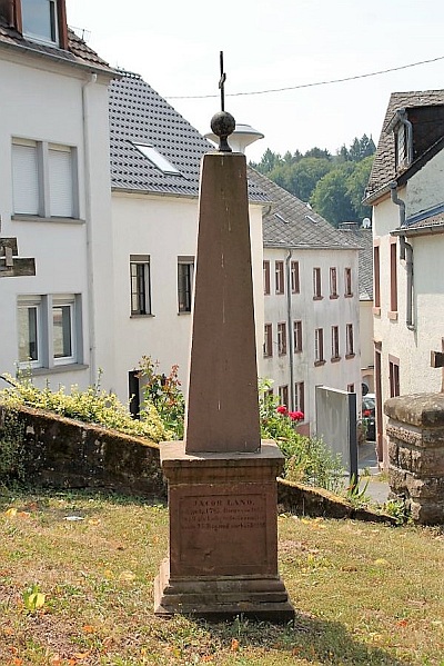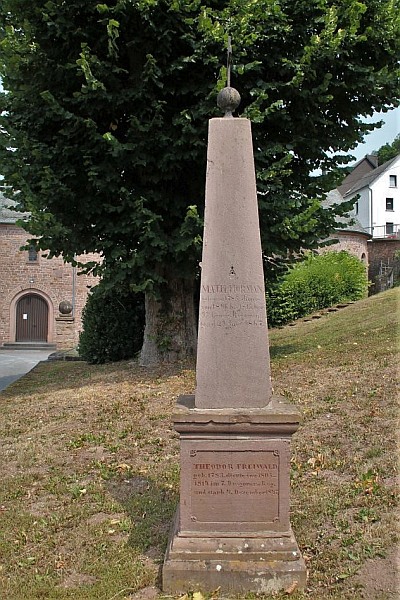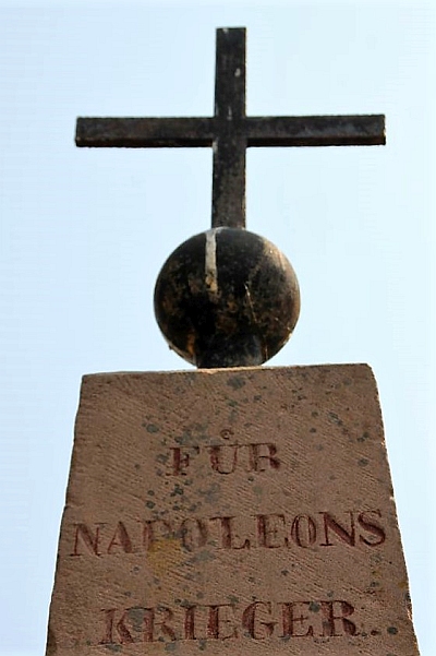 Am Zugang zum Kirchhof steht ein Denkmal FÜR NAPOLEONS KRIEGER, errichtet wohl kurz nach der Mitte des 19. Jahrhunderts. Sowohl der würfelförmige Sockel als auch der aufgesetzte Obelisk sind mit Inschriften bedeckt, die die Teilnehmer an verschiedenen napoleonischen Feldzügen mit ihren Geburts- und Sterbedaten nennen; vermerkt sind außerdem die Truppenteile, denen die jeweilige Person angehörte. Die erste Inschrift wurde offenbar auf der Vorderseite des Sockels für den 1847 verstorbenen JOHANN WALLERSHEIM angebracht. [1]