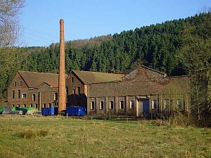 1903 bei der alten Uscher Mühle gegründet, von der heute nur noch ein stark verändertes Wirtschaftsgebäude aus dem 19. Jahrhundert erhalten ist. Das Fabrikgebäude von 1903 ff. bildet heute den nördlichen Teil der Anlage.: Zwei unterschiedlich breite, zweigeschossige Ziegelrohbauten flankieren in Giebelstellung eine mittlere, flach gedeckte Halle, deren Fassade mit Sandstein verkleidet ist; die Mittelachse wird durch einen flachen Giebelaufsatz markiert. An allen Bauteilen große Segmentbogenfenster mit originaler Eisenversprossung. Im inneren der mittleren Halle noch die Einrichtungen zum Ziehen der Rohre aus der Gründerzeit erhalten.
