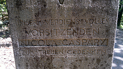 Die Ortsgruppe Trier des Eifelvereins hatte ihre Mitglieder am Christi-Himmelfahrts-Tage zur Weihe der dem Gedächtnis ihres am 10- November 1932 dahingegangenen langjährigen Vorsitzenden, Nicola Caspary, errichteten Gedenkbank eingeladen. Um 11 Uhr wanderten die in großer Zahl erschienenen [...] des Verstorbenen durch den Weißhauswald nach dem Felsenpfad am Abhang des Berges entlang, wo an einem der schönsten Aussichtspunkte unweit der Hindenburghütte als schlichtes Denkmal eine halbrunde Steinbank von der Ortsgruppe Trier errichtet ist. An der erhöhten Stirnseite der Bank gibt es die Widmung "Dem verdienstvollen Vorsitzenden, Herrn Nicola Caspary, in treuem Gedenken" den Zweck, die über dem Banksitz angebrachte Aufschrift "Errichtet 1933 von der Ortsgruppe Trier des Eifelvereins" die Stifterin des Denkmals an. Nachdem die Mitglieder der Familie Caspary, Landrat Bender (Wittlich) als Vertreter des Hauptvorstandes des Eifelvereins und Oberbürgermeister Dr. Weitz als Vertreter der Stadt Trier sich eingefunden hatten, gedachte der Vorsitzende der Ortsgruppe Trier, Major Wandesleben, des schweren Verlustes, den mit der Familie Caspary und der Stadt Trier der Eifelverein durch den Tod seines langjährigen Vorsitzenden, der 40 Jahre dem Verein angehörte, erlitten habe. In rühmenden Worten, hob der Redner die großen Verdienste des naturbegeisterten Freundes des Eifellandes hervor, seine unermüdliche stille Arbeit für die Erschließung der Schönheiten der Eifel, die ihn keine Mühe und geldlichen Opfer scheuen ließ. Nachdem der Redner auch dem Erbauer der Gedenkbank Architekt Peter Gracher, herzlich gedankt hatte, schloß er mit dem Versprechen, daß die Ortsgruppe Trier den edlen Bürger der Stadt Trier, den treuen Deutschen und den verehrten Führer niemals vergessen werde. Apotheker Meyer gedachte in schwungvollen Versen der hohen Verdienste und Vorzüge Casparys als Führer und Vorsitzender der Ortsgruppe Trier des Eifelvereins. Darauf sprach Landrat Bender (Wittlich) im Namen des zu seinen lebhaften Bedauern am Erscheinen verhinderten Vorsitzenden, Geheimrat Dr. Kaufmann, mit dem den Verstorbenen enge Beziehungen verknüpft hatten. Der Redner sah in der Ehrung, für die er im Namen des Hauptvorstandes der Ortsgruppe Trier dankte, ein Denkmal, das im Sinne Nicola Casparys die Aufmerksamkeit der Öffentlichkeit auf die Ziele und die Arbeit des Eifelvereins lenke und fördern helfe.
