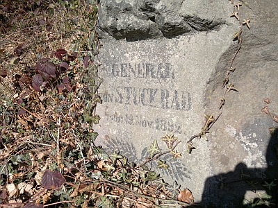 Sein voller Name lautete: Edwin, Gustav, Wilhelm von Stuckrad. Er war ein preußischer Offizier und lebte von 1840 - 1892. Er verunglücke am 19.11.1892 bei einem Spazierritt hier tödlich. Der vorbeiführende Weg vom Schneidershof zum Drachenhaus/Weißhaus wurde nach ihm benannt. [1]
