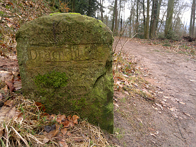 Der Wegweiser weist auf der Vorderseite die Richtung zum Drachenhaus. Die Rückseite ist nicht mehr lesbar. [1]