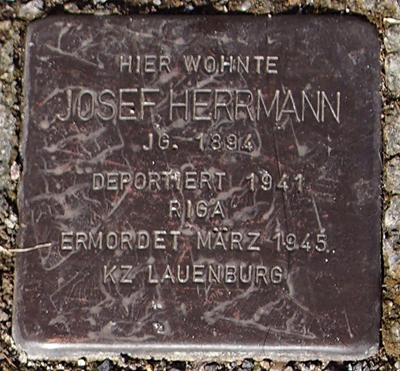 Bild 1: Andy Dufresne & Red (https://commons.wikimedia.org/wiki/File:Josef_Hermann_Stolperstein_Greimerath.png), „Josef Hermann Stolperstein Greimerath“, https://creativecommons.org/licenses/by-sa/4.0/legalcode