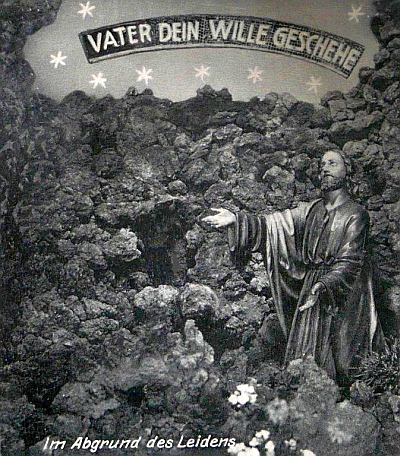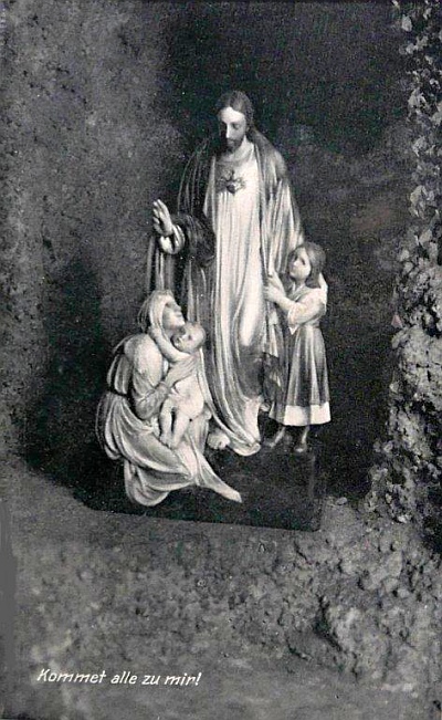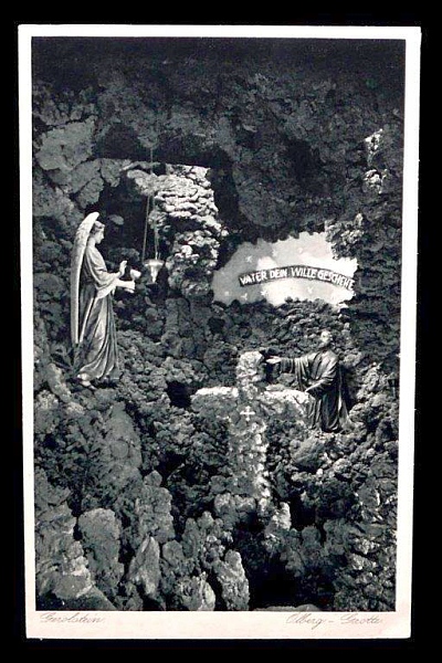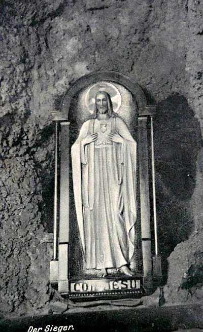 Bis zur Bombardierung 1944/45 hat es diese große begehbare Felsengrotte mit diversen Räumen, komplett aus Lavagestein erbaut, beim Krankenhaus gegeben. Besonders auf uns Kinder übte sie eine magische Anziehungskraft aus, die beim Betreten Ehrfurcht auslöste. [1]