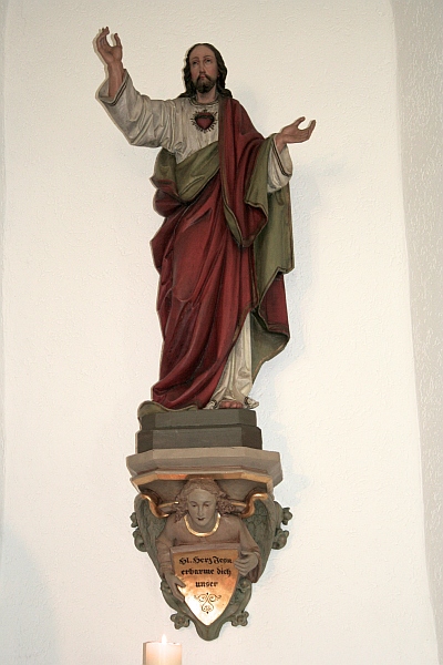 Die Inneneinrichtung stammt wie die Glasfenster weitgehend aus dem letzten Drittel des 19. Jahrhunderts. Zur Ausstattung der Kirche gehören noch ein 75 cm großes Kruzifix und ein Sakramentshäuschen, das außen über der Eingangstür eingebaut wurde.