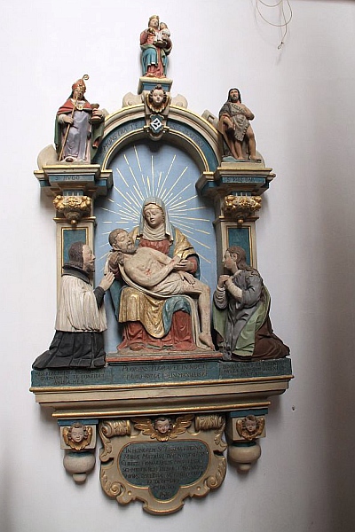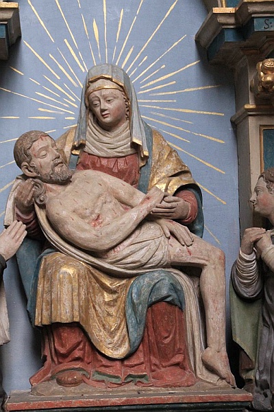 An der Nordseite des Chores rechts neben dem Sakramentshaus befindet sich eine Skulpturengruppe der Maria mit dem Leichnam Christi auf dem Schoß (Pieta) in einer nach hinten offenen (später mit einem großen Kreuz ausgefüllten, das aber inzwischen durch einen zurückhaltenden Strahlenkranz ersetzt wurde) Nische, umrahmt von seitlichen Pilastern, die einen Rundbogen mit der Inschrift MONSTRA TE ESSE MATREM tragen. Sandstein, koloriert, 270 x 130 cm.