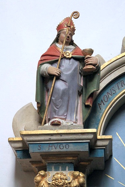 hl. Hugo (von Lincola mit dem Kelch, Patron des Stifters; Beschriftung: