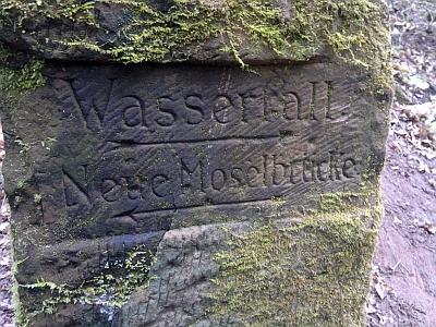 Historischer Wegestein am Wasserfall