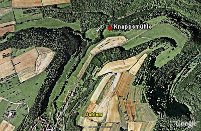 Etwa ein Kilometer nördlich von Dahlem stehen im Wald auf dem rechten Ufer des die Gemarkungsgrenze zu Sülm markierenden Keutelbachs die Ruinen der Knappmühle.