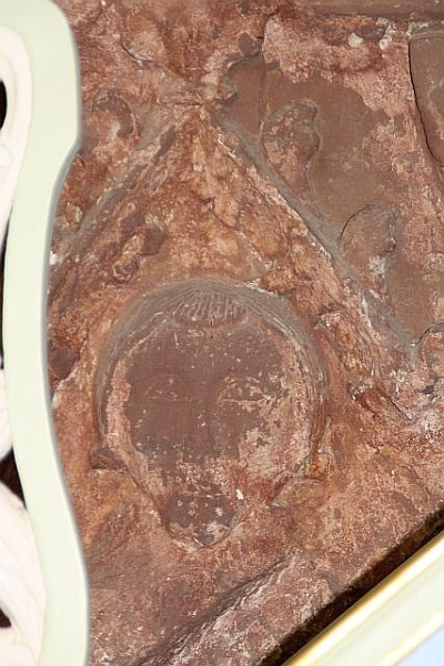 Roter Sandstein, 215 x 110 cm, "für die den Stein überschneidende Kanzeltreppe