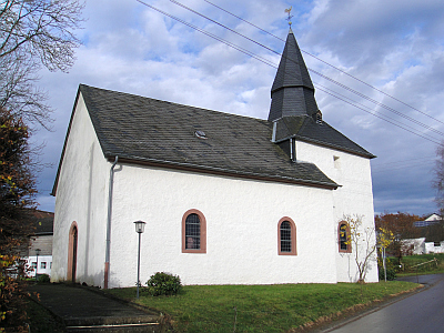 Das Visitationsprotokoll w. J. 1570 führt eine capella Groischeidt auf. Der Neubau d. 18. Jahrhundert ist ein einfacher Saalbau mit Ostturm und als Bruchsteinbau schlicht geputzt. Die Westtür flachbogig geschlossen, die neu gefaßten Sandsteinfenster rundbogig. Der im Äußeren sehr breit wirkende anderthalbgeschossige Turm in seiner schweren Form selten und mit originellem Helm, ähnlich wie in Hölzchen (s. Arzfeld) und Lauperath (s. Waxweiler), offenbar noch der Chorturm des gotischen Baues mit spätgotischen Rippen, Rundkonsolen und Wandsäulchen. Das einfache Schiff erhielt eine Holzlehmdecke mit Voute.