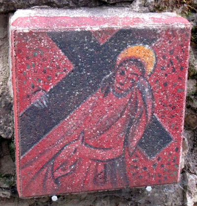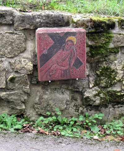 Kreuzweg mit 15 Stationen, am Ortsausgang Weinbergstraße gelegen. Stationen bestehen aus einzelnen quadratischen Steinplatten, an der Begrenzungsmauer angebracht. [1]
