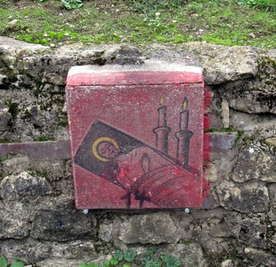 Kreuzweg mit 15 Stationen, am Ortsausgang Weinbergstraße gelegen. Stationen bestehen aus einzelnen quadratischen Steinplatten, an der Begrenzungsmauer angebracht. [1]