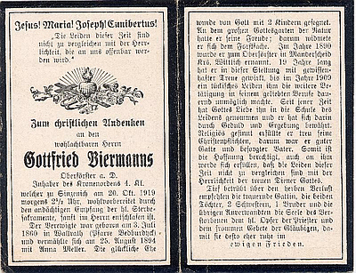 [2] Totenzettel Gottfried Biermanns. Sammlung Hans-Jürgen Neuhaus, Manderscheid (Bernkastel-Wittlich), 2018.