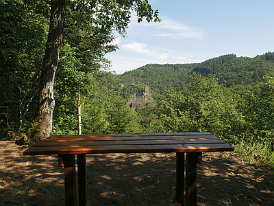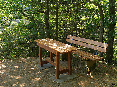 Die Wegelagerer wollten das nicht so einfach hinnehmen und richteten den Platz nun wieder her. Außer einer Bank stellten sie noch einen rustikalen Holztisch auf, so dass nun Gäste und Einheimische diesen wunderbaren Aussichtsplatz wieder besuchen und die Aussicht auf die Burgen in vollen Zügen genießen können. [1]