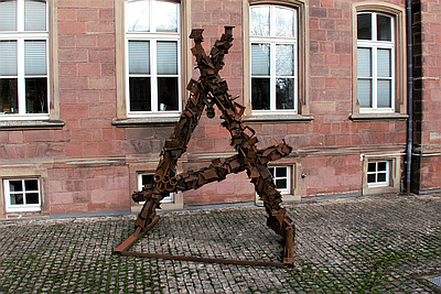 Das eiserne »A« ist im Zuge der Heilig-Rock-Tage 2007, als Gemeinschaftsarbeit einiger Besucher, mehrerer Auszubildender des Handwerks und Trierer Bürger auf dem Hauptmarkt zusammengefügt worden. Metallplatten, Schrauben, Rohre und Winkel wurden ineinander verkeilt und verschweißt. Die Einzelteile bilden zusammengesetzt ein aufrechtstehendes, asymmetrisches A. Es soll, in seiner schroffen, raumeinnehmenden Größe an die schwere, oft erdrückende Last der Arbeitslosigkeit in unserer Gesellschaft erinnern und vor vorschneller Stigmatisierung mahnen. [1]