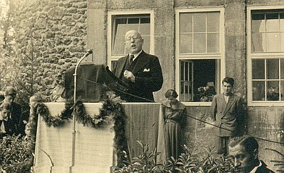 Bild 1: MdL Fritz Hartmann (Daun) bei der Einweihung des Krankenhauses 1952. [1]