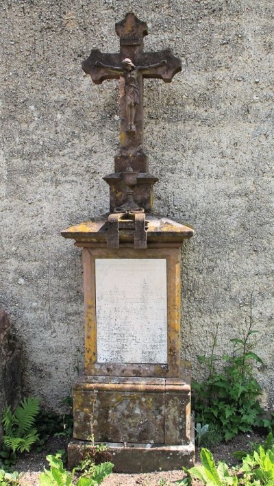 Vor der Scheune, die den Kirchhof nach Nordosten begrenzt, stehen drei Pfarrergrabsteine aus dem späten 19. und frühen 20. Jahrhundert, die beiden älteren in gotisierenden Formen. [1]