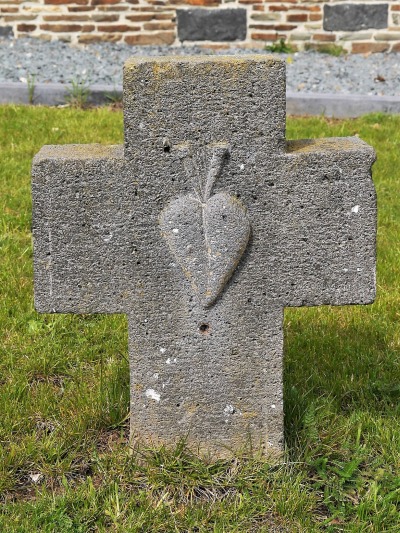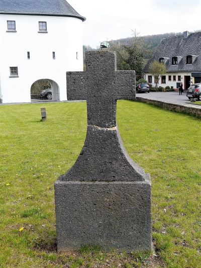 Beide Kreuze weisen auch darauf hin, dass der frühere Friedhof rd. um die Pfarrkirche angelegt war und durch Bomben am 2.1.1944 zusammen mit der Pfarrkirche zerstört wurde. [1]