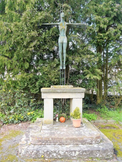 Der Altar mit einem metallenen Kreuz und Corpus wurde für sakrale Veranstaltungen auf dem Vorplatz, z.B. an Fronleichnam verwendet. [1]