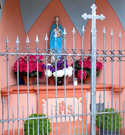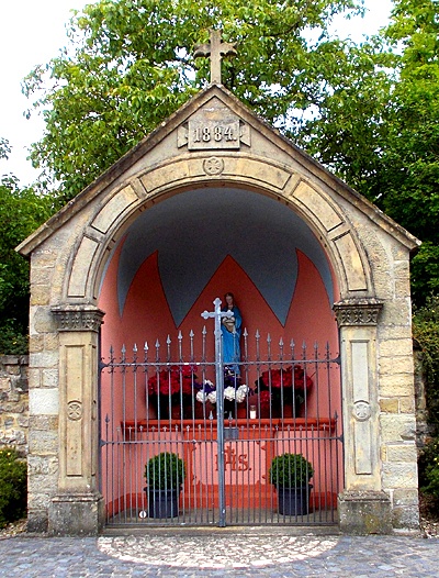 In der Straßengabelung öffnet sich eine Wegekapelle aus gelblichen Kalksandsteinquadern. Im Giebel gibt eine Tafel Auskunft über das Erbauungsjahr (1884). Im Inneren befindet sich ein Altar mit IHS-Monogramm auf dem Antependium. [1]