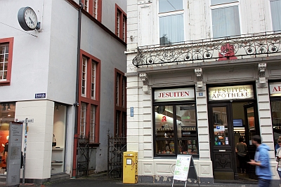 Der Durchgang neben der Jesuitenapotheke wurde von zu spät kommenden Schülern des Jesuitengymnasiums benutzt. Auf trierisch: Gisuwidderpördschi. [1]