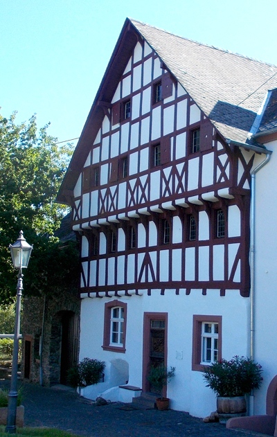 Spätmittelalterlicher Fachwerkbau mit massivem Erdgeschoss, 1484/85, Umbauten bezeichnet 1558 und 1824. [1]