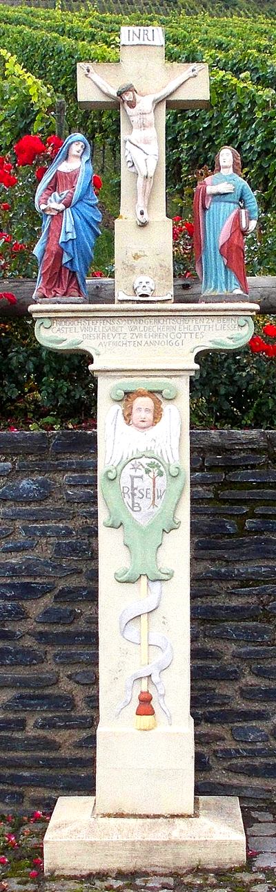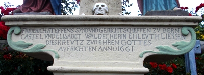 FRIDRICH STEFFENS SYND VND GERICHTSCHEFFEN ZV BERNCASTEL VND ELISABETH WALDECKERIN [?] EHELEVTH LIESSEN DIES KREVTZ ZVR EHREN GOTTES AVRICHTEN ANNO 1661