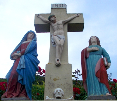 Kreuzigungsbildstock, bezeichnet 1661. Die Beifiguren jüngere Kopien der im Museum aufbewahrten Originale. [1]