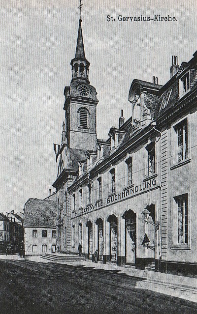 1803 Die Pfarrkirche Sankt Gervasius im Bereich des Agnetenklosters (Kaiserthermen) wird auf Abbruch versteigert. Die Funktion der Pfarrkirche Sankt Gervasius wird auf die bisherige Sankt-German-Kirche in der Neustraße übertragen (nun: Sankt German / Sankt Gervasius).