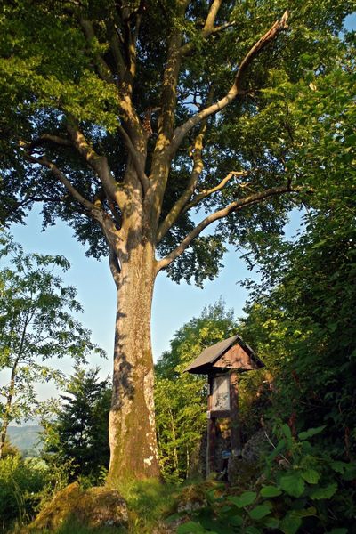 Fagus sylvatica, angeblich vor 1650 gekeimt; 34 m hoch bei 3,15 m Brusthöhenumfang und 20 m Kronendurchmesser. [2]