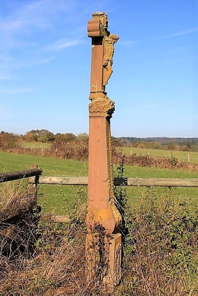 Auf der Höhe zwischen Kailbach und Spanger Bach: Hohes, spätbarockes Schaftkreuz, aufgestellt ZU TROST DES HIER VERSTORBEN GERICHTSSCHEFEN JODOCUS HOEGNER VON OBERKAEYL (Schaftinschrift). Das auf dem Sockel vermerkte Datum 22. Mai 1778 gibt vermutlich den Todestag und nicht den Zeitpunkt der Errichtung an. Zugehöriges, großes Abschlußkreuz mit doppelt gespaltenen Balkenenden. [1]