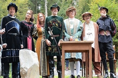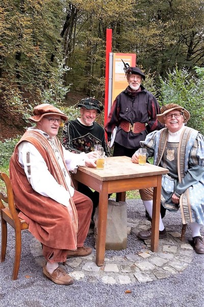 mittelalterlich gewandet und die früheren Herren darstellend, gemeinsam an einem Tisch über dem Dreiherrenstein. Spannend und anschaulich war die Vermittlung der geschichtlichen Hintergründe und die gute Bewirtung sorgte ebenfalls für einen angenehmen Aufenthalt.