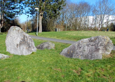 In Steingruppen, vergleichbar mit den Steinen der japanischen Gärten, tragen diese Steine nun ihre Geschichte in dem neuen Landschaftsambiente aus: