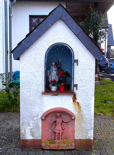 Heiligenhäuschen an der Wittlicher Straße gelegen. In der Nische eine Muttergottesstatue, am Sockel Reliefdarstellung Erzengel Michael mit Schwert und Seelenwaage. [1]