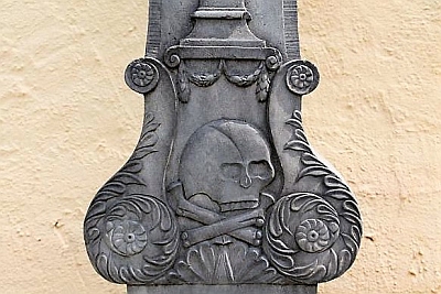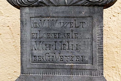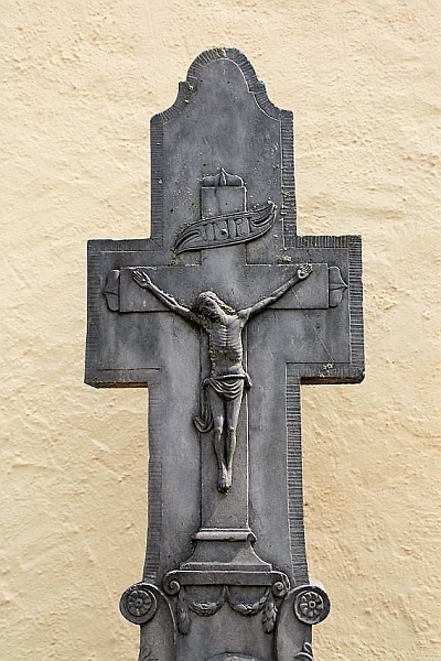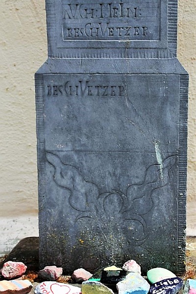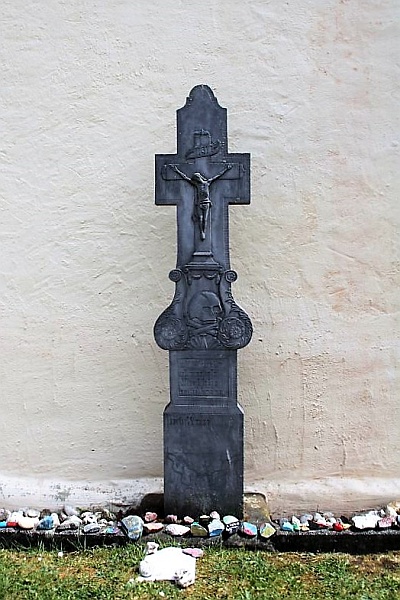 Grabkreuz aus Schiefer links vom Haupteingang. [1]