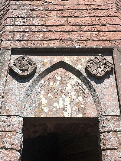 - 8 Kreuzblumen, 4 Kapitelle und 2 Wappenschilder sowie der Schrift über der Eingangstür : Mark 100