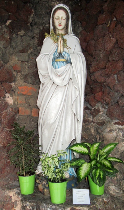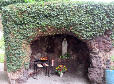 Vor dem Eingangsbereich zum Pflegeheim Helenenhaus (Vereinigte Hospitien) befindet sich diese Mariengrotte. [1]