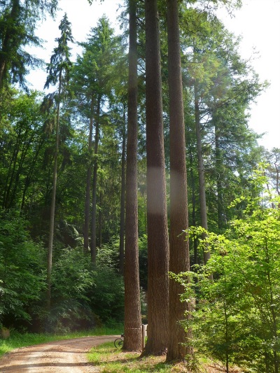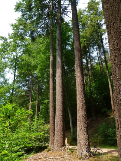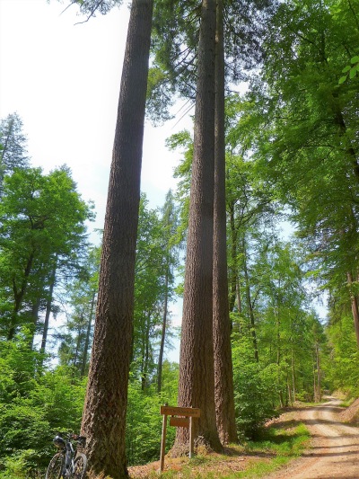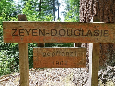 Die Baumgruppe am 'Baum-Welt-Pfad' wurde 1902 vom damaligen Förster Zeyen gepflanzt. Mit 60 m Höhe und einem Stammumfang von 4 m gilt die Zeyen-Douglasie als der mächtigste Baum in Rheinland-Pfalz. [1]