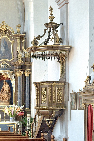 Saalbau, 1725, Turm aus dem 16. Jahrhundert, 1749 erhöht. [2]