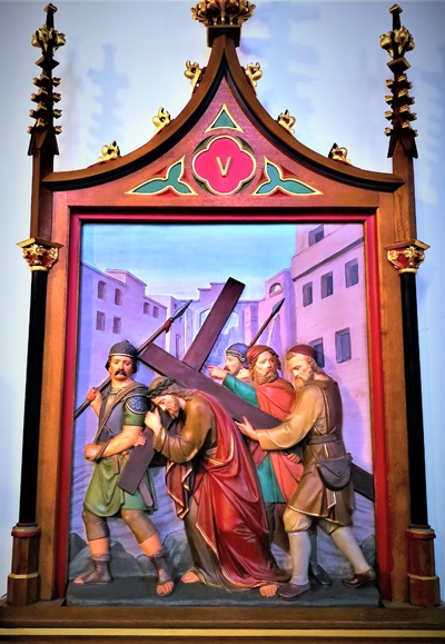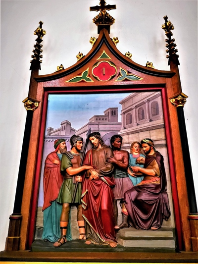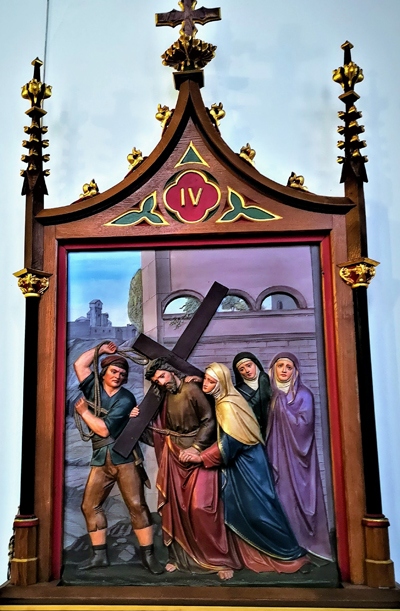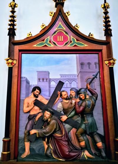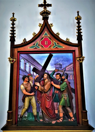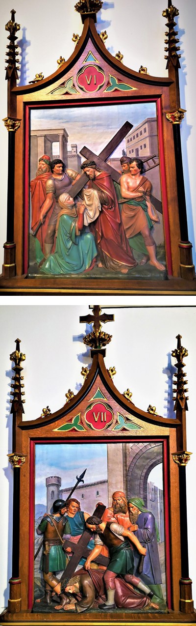 14 Kreuzwegstationen im Innenraum der Klosterkirche des Brüderkrankenhauses. [1]
