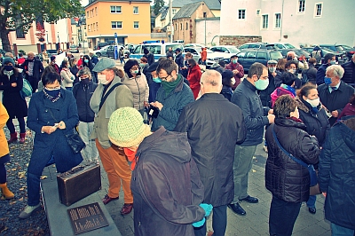Als Gedenkort für die deportierten jüdischen Menschen aus der Region Trier wurde 2020 von der Gesellschaft für christlich-jüdische Zusammenarbeit e.V. ein Denkmal realisiert und der Stadt Trier als Geschenk überreicht. Es handelt sich um die Nachbildung eines kleinen Koffers aus Bronze, der schräg auf einer Begrenzung aus Beton angebracht wurde- nach einer Anregung von Ralf Kotschka, Mitglied der Arbeitsgemeinschaft Grenzenlos gedenken, der das Denkmal konzipierte und gestaltete. Bei dem wie unabsichtlich stehengelassenen, "verlorenen" Koffers handelt es sich um ein Symbol für das Wenige, das die deportierten jüdischen Menschen bei ihrer "Umsiedlung" mitnehmen durften. Es waren Koffer bis zu 50 kg pro Person erlaubt. Am Bestimmungsort wurde ihnen dieser letzte Besitz auch meist sofort genommen und sie wurden entweder in Ghettos festgehalten, ausgebeutet und umgebracht, oder kamen sofort in die Gaskammern der Vernichtungslager.