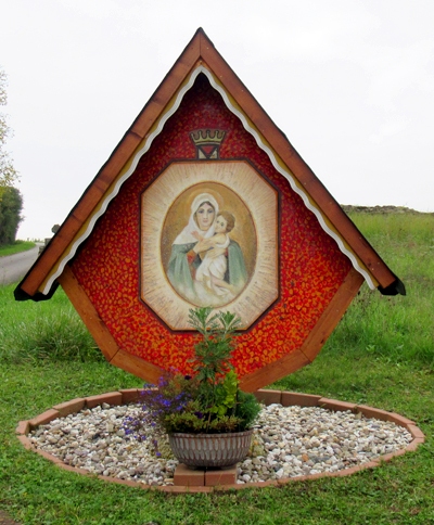 Am Ende der Weinbergstraße in Temmels, am Beginn des Kreuzweges, befindet sich dieser Bildstock Maria mit dem Kinde. [1]