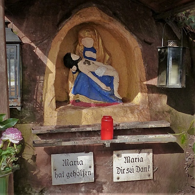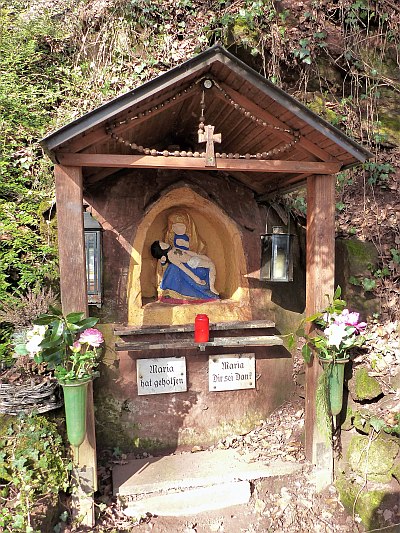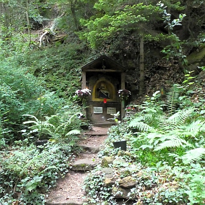 Am Ende eines schmalen Pfades im Hang nördlich des Ortes. [1]