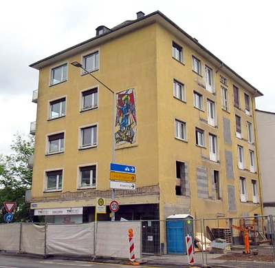 Dieses Glasmosaik wurde nun von dem Trierer Ehepaar Thomas und Christine Lutgen aufwendig restauriert und befindet sich jetzt an der Außenfassade des Hauses Kurfürstenstraße 4 in Trier. [3] [4]